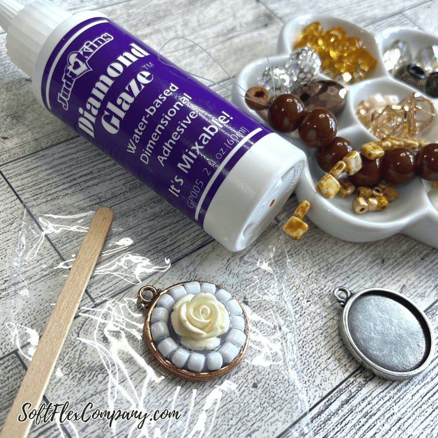 Try something different! For this lovely pendant, we selected a Cloud Dancer collection of beads and used Diamond Glaze to make a bezel shine. A creation like this is truly one of a kind and is really easy to put together.
