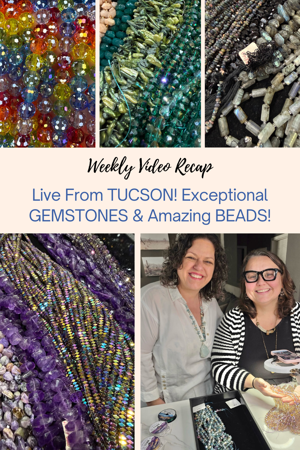 Be a part of the massive gemstones and beads show in Tucson. For 70 years, the city of Tucson has been a hub for gemstone buyers and sellers, from all over the world. Hotel rooms are turned into bead stores, ballrooms become jewelry events, and industries from around the globe send representatives to the city to buy and sell. And now, you can join the fun from the comfort of your home. Sara and Kristen are your personal shoppers!