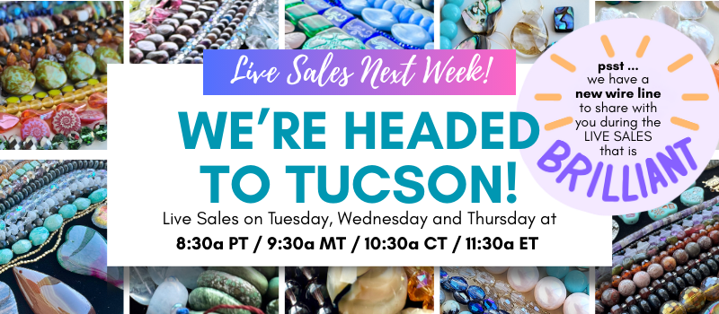 LOVE is in the air! We unboxed our Valentine's Day themed jewelry making kit this week. This kit is infused with passion and full of gorgeous beads. Sara made a bracelet and a pair of earrings. And we watched our friends, around the web, make their own amazing designs. Kristen showed us how to make an intention necklace for Chinese New Year. For this project, she designed a fiery homage to the Year of the Horse. DON'T MISS an AMAZING week of Live Sales, next week, as we broadcast from Tucson. We are looking for the finest gemstones and beads and we cannot wait to share them with you! Join us for a fun recap! And check out the information you need to catch us live next week!