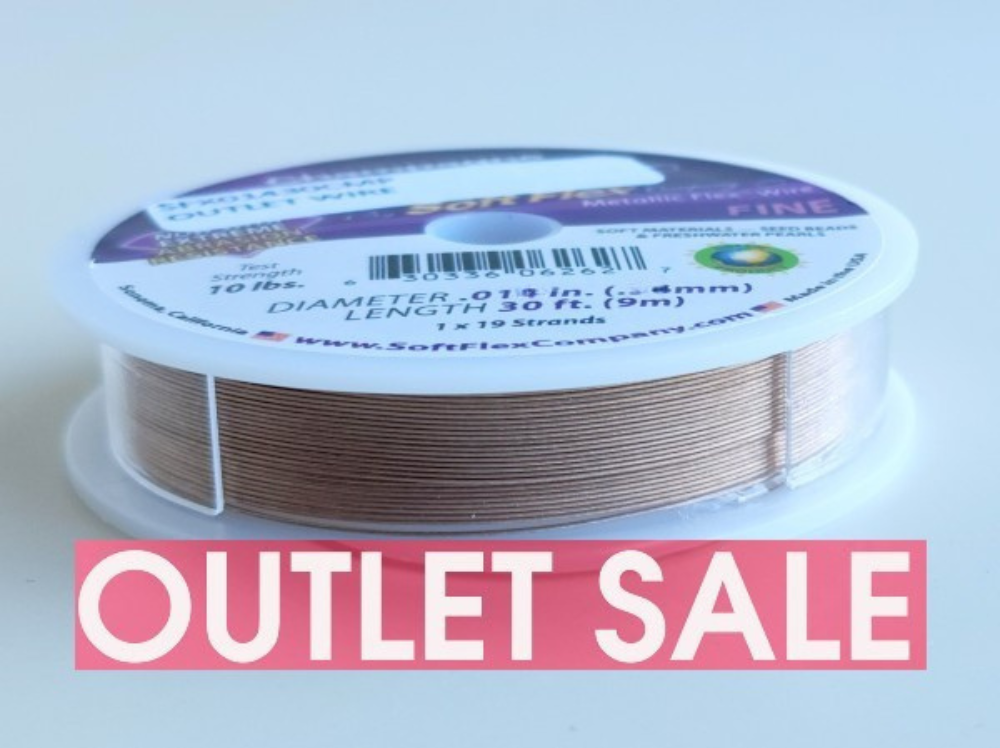 Outlet wire is wire that did not pass our quality control inspection. The cosmetic look of the wire is similar to our normal inventory, but we are perfectionists. This batch may be slightly discolored or have blacks flecks in the finish. We felt it just did not pass muster to be sold as our premium wire. We did like the idea of presenting it as a low cost option for people that need a beautiful beading wire and can see past any imperfections. This wire is still in excellent condition and is as strong as our regular wire.