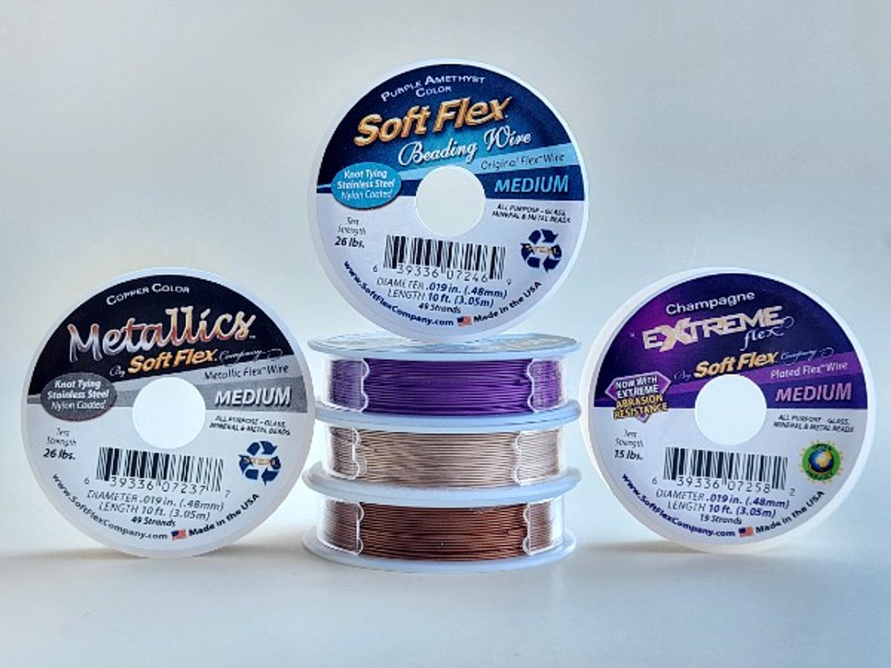 Soft Flex Wire is a lead-free beading wire for designers that demand strength and durability. Soft Flex Wire is a superior beading wire, created by beaders for beaders. Soft Flex Wire is constructed of either 21 or 49 micro woven stainless steel wires. It is supple enough that it can be knotted and comes in a wide variety of colors. It is available in 3 diameters: .014, .019, and .024. We recommend Soft Flex Wire for designers that want their pieces to last and eliminate the frustration of restringing. Soft Flex Wire is also available in 30, 100 and 1000 foot spools.